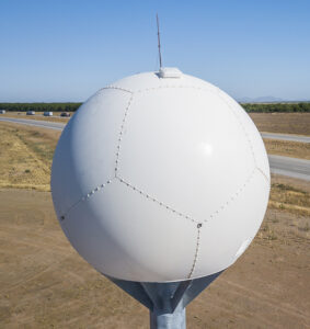 The dust-detection technology employs overhead message boards, variable speed-limit signs, closed-circuit cameras and short-range sensor units that detect that detect blowing dust. The system also includes a long-range weather X-Band radar dish, mounted atop a 22-foot pole at the State Route 87 interchange; this unit can detect storms more than 40 miles away. X-Band, which picks up a frequency range from 8 to 12 gigahertz, is most often used for civil, military and government radar applications such as weather monitoring, air-traffic control, maritime vessel traffic control, defense tracking and vehicle speed detection for law enforcement. The lower frequencies make this band suitable for the harshest weather conditions, providing exceptionally high link availability for weather-monitoring radar solutions, ADOT noted.