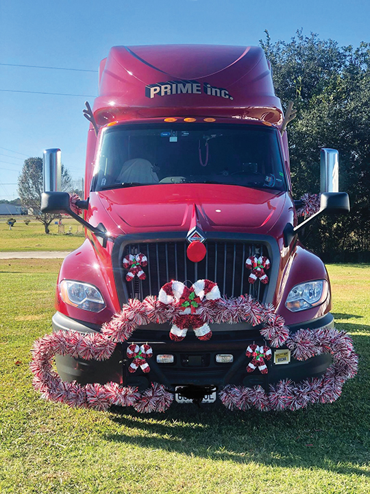 For Frankie Faulk, who has been a lease-operator for Prime Inc. for two years, decorating her truck brings a bit of comfort while she’s away from her children, other family and friends during the holiday season.