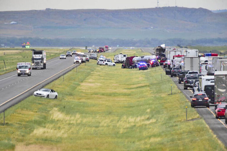 The pileup was just west of Hardin, with additional ambulances called in from Billings to help. The identities of the dead and conditions of the survivors are not yet being released.