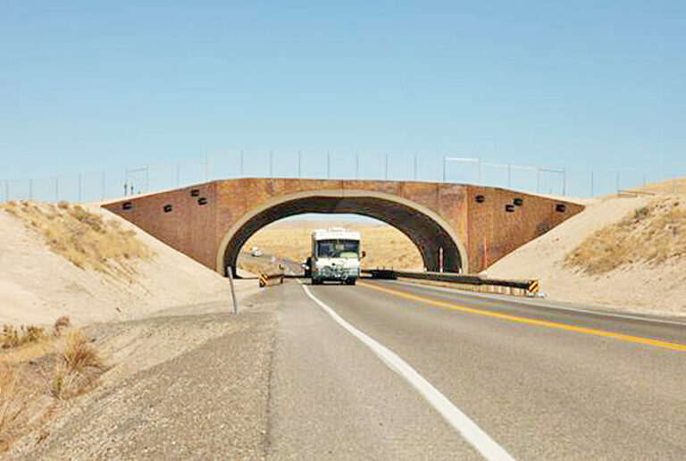 The wildlife overpasses are covered with native soil and vegetation to replicate the natural environment and encourage crossing by mule deer and other animals. Approximately 60 miles of 8-foot-high wildlife fencing installed on both sides of the roadway helps direct animals to the crossings.
