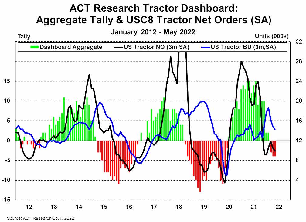 “The readings from the economic and ACT State-of-the-Industry data sets are more of a mixed bag of positives, neutrals and negatives,” Veith said. “For readers who are new to this framework or want a refresh, we believe that the dashboard offers a three to six-month forward-looking metric for conditions in the tractor market.”