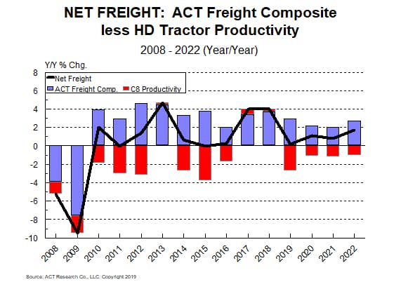 “From a net freight perspective (freight less productivity), growth falls from 4% in 2018 to 0.2% in 2019, as productivity has risen with a vengeance in response to the sharp run-up in freight rates in 2018,” he said.