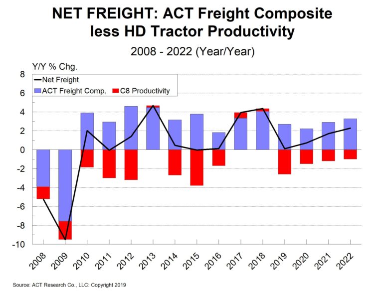COLUMBUS, Ind. — According to ACT Research’s latest release of the North American Commercial Vehicle OUTLOOK, slower freight growth, an easing of driver supply constraints, the resumption of the long-run freight productivity trend and strong Class 8 tractor fleet growth will increasingly pressure rates and by extension, trucker profitability in 2019.
