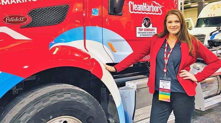 At the 2022 Women In Trucking Accelerate! Conference & Expo, Mangino presented the first female truck wrap to Cathy Spencer on behalf of Clean Harbor’s Employee Resource Group, Women Advancing our Values in Environmental Services.