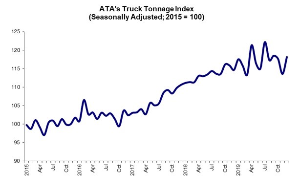 ARLINGTON, Vir. — American Trucking Associations’ advanced seasonally adjusted (SA) For-Hire Truck Tonnage Index increased 3.3% in 2019, about half the annual gain in 2018 (6.7%). The increase was the tenth consecutive year in which the tonnage index has risen above the previous year.