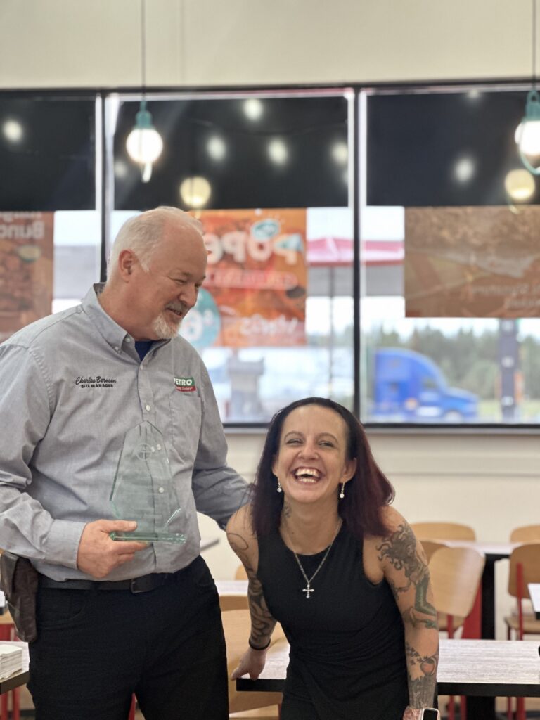 Bernsen received the award, which includes a trophy and check for $5,000, from TAT (formerly Truckers Against Trafficking) Executive Director Esther Goetsch and TravelCenters of America CEO Debi Boffa at TA Florence, S.C. on Oct. 2, the location where he worked as general manager when the incident occurred for which he is being recognized. As an added surprise, the trafficking survivor Bernsen aided, Nikki, also attended the awards presentation. This marked the first meeting between the two since the incident that brought them together originally.