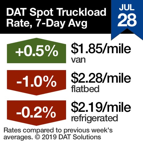 For the latest spot market loads and rate information, visit www.dat.com/trendlines and follow @LoadBoards on Twitter.