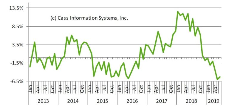 “We acknowledge that all of these negative percentages are against extremely tough comparisons; and the Cass Shipments Index has gone negative before without being followed by a negative GDP,” Broughton said. “May and June’s drops are significant enough to pose the question, ‘Will the Q2 ’19 GDP be negative?’”