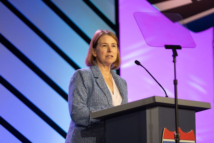 During her speech, she touched on several topics, including truck parking, the importance of female truck drivers, and workplace safety. She also complimented the industry and its stakeholders, many of whom were gathered to hear her speak.