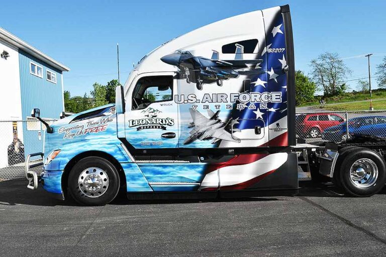 FARMINGTON, N.Y. — Leonard’s Express is showing support for veterans by giving several of its long-haul trucks a military makeover.