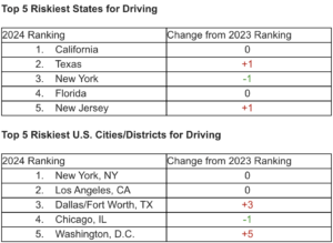 - Risky Driving Behaviors: Following too close, use of handheld device, not wearing a seat belt, and speeding continue to top the list of riskiest driving behaviors. Notable increases and decreases from 2023 to 2024 include: Speed violation (+9%), food or drink (+7%), no seat belt (-13%) and handheld device (-9%).