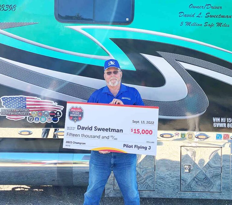“David is a great person with a tremendous set of core values while always being safety conscious. It is rare to find drivers with not only his qualities but who have driven over a million miles safely while out on the road. We are very blessed at Bennett to have David,” Tom Woodall, president of Bennett DriveAway, said.