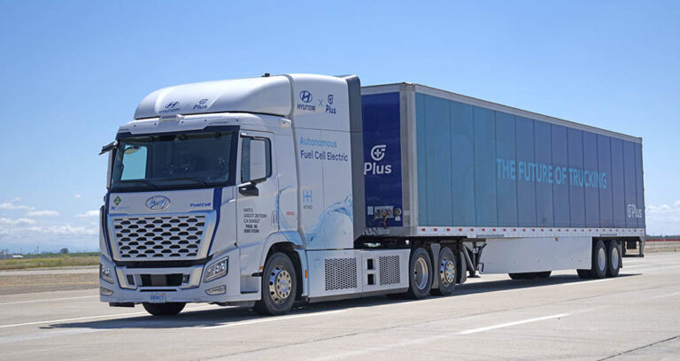 “The collaboration seeks to show that autonomous hydrogen fuel cell trucks can help make trucking safer, more efficient and more sustainable,” the Hyundai and Plus said in a joint statement.