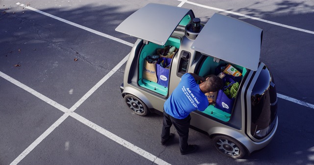 Under the self-driving service, shoppers can order same-day or next-day delivery online or on a mobile app for a flat rate of about $6. After the order is placed, a driverless vehicle will deliver the groceries curbside, requiring customers to be present to fetch them. The vehicles will probably be opened with a numeric code.