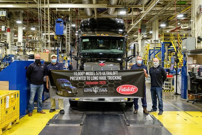 “To receive the 10,000th Model 579 UltraLoft is a great honor for us at Long Haul Trucking. Uptime is what Long Haul Trucking and Peterbilt are all about. It’s also a big part of the reason we have 140 Peterbilt 579s in our fleet,” said Josh Hainstock, vice president of fleet operations for Long Haul Trucking.