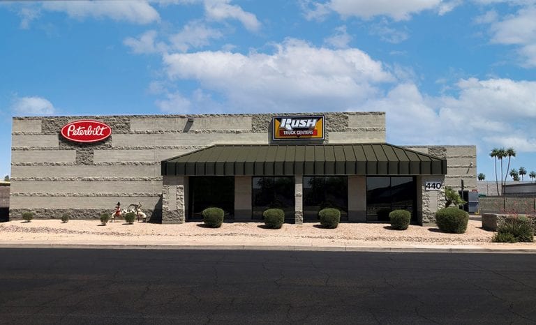 Rush Peterbilt Truck Center-Phoenix East, which opened in late March, is a parts and service location featuring eight service bays, 1,000 square feet of parts retail space, and 3,000 square feet for parts inventory. The Phoenix East store is strategically located with easy access to U.S. 60 and U.S. 101.