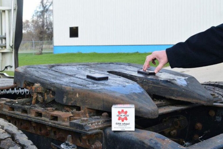 The soy-based fifth wheel pads, square in shape and measuring three by three inches with a thickness of half an inch, are applied by hand at the nine and three o’clock positions on the fifth wheel. Once the trailer is connected, the grease from the pads disperses evenly around the fifth wheel, creating no mess. These pads, which are made of more than 80% U.S. soy, are recognized in the United States Department of Agriculture’s Certified Biobased Product program.