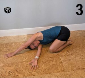 - Kneel with knees wide: sink back into Child’s Pose (Fig. 3).