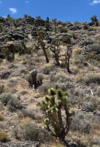 Sprinkled liberally among the harsh landscape were Joshua trees — gnarled and beautifully ugly, they serve as food and shelter for many of the Mojave’s birds and animals, including the currently threatened (just shy of endangered) Desert Tortoise.