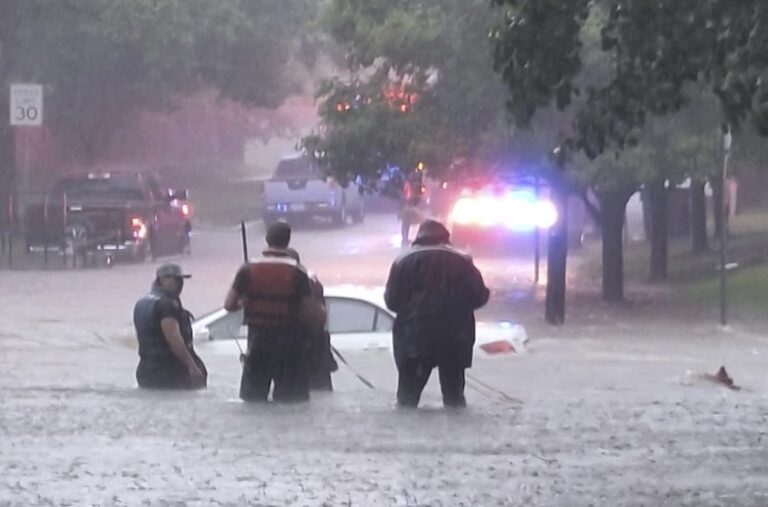 DALLAS (AP) — One person has died after severe weather tore through parts of the central U.S., including heavy rain in Dallas, a tornado that touched down in the Kansas City area and flash flooding in Kansas that forced firefighters to rescue dozens of people, including stranded motorists.