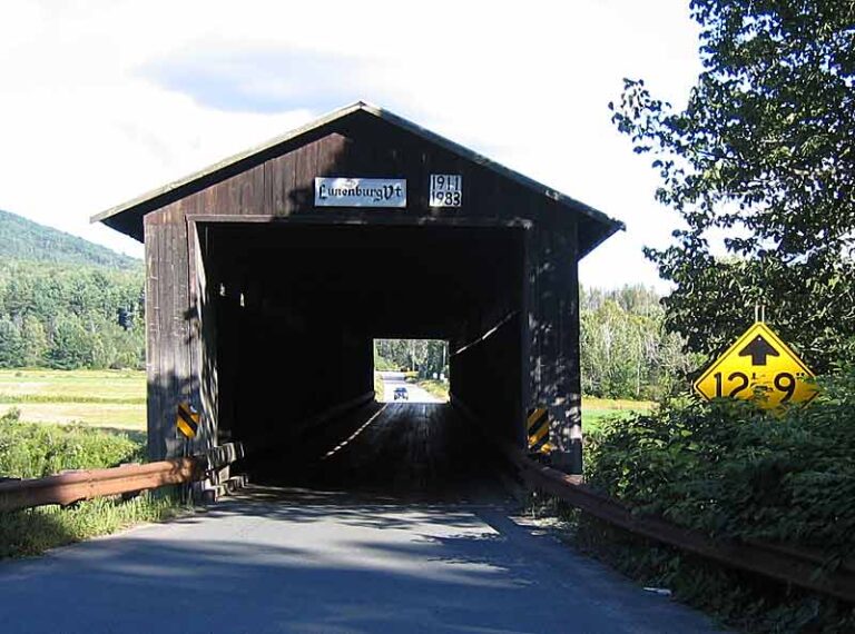 The 266-foot-long Mount Orne covered bridge spans the Connecticut River along Route 135 between Lancaster, New Hampshire, and Lunenburg, Vermont. It suffered some cosmetic damage in last week’s crash.