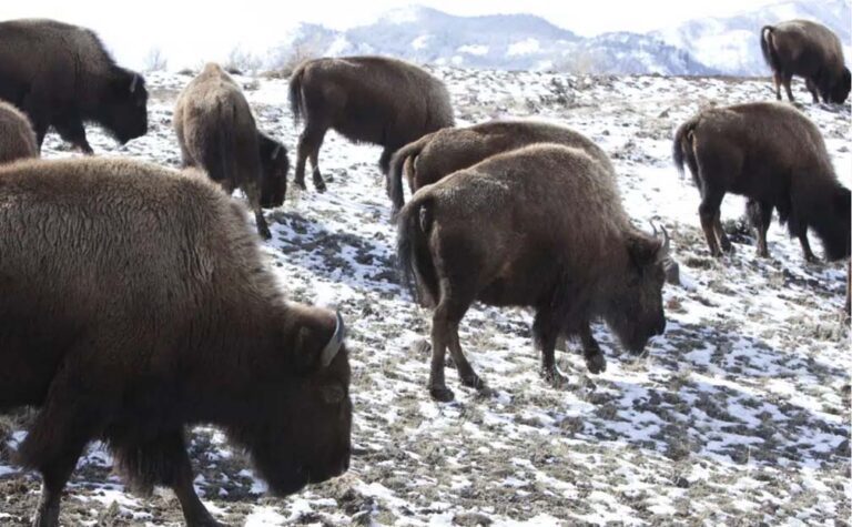 Bison in the region often congregate near roadways in the winter, where it’s easier for them to navigate amid heavy snow, the police department said. The animals can be hard to see at night because of their dark brown color and because their eyes don’t reflect light, including headlights, like deers’ eyes do, it said.