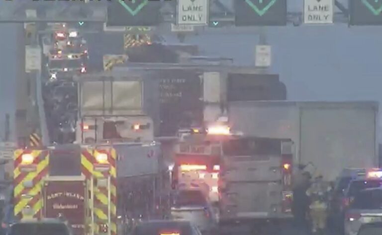Traffic cameras showed emergency vehicles with flashing lights and traffic not moving on the westbound lanes of the bridge. Several tow trucks removed vehicles involved in the crash from the bridge.
