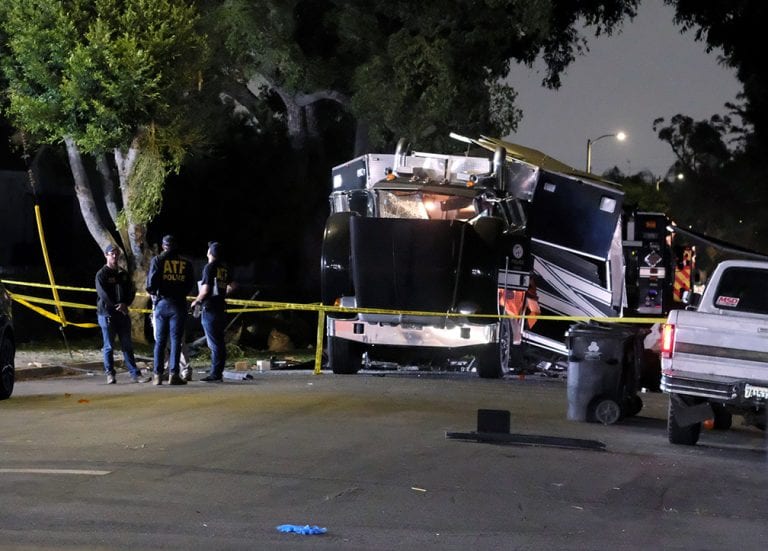 Seventeen people were hurt — including nine Los Angeles police officers and a federal agent — in the blast, which also flipped and damaged cars and smashed windows in homes and a laundromat. The explosion was heard blocks away.