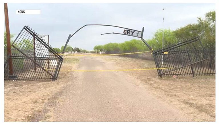 When they went to investigate, they saw the semi being chased into the front gates of the Encinial Cemetery, causing major damage to the gate.