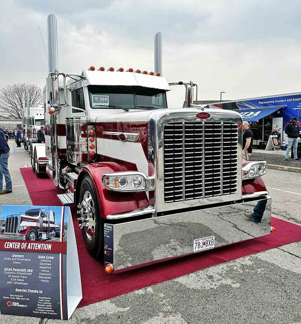 This striking 2024 Peterbilt 389 -- nicknamed "Center of Attention" -- is owned by Kirby and Rosemarie Steins. (The Trucker/Linda Garner-Bunch)