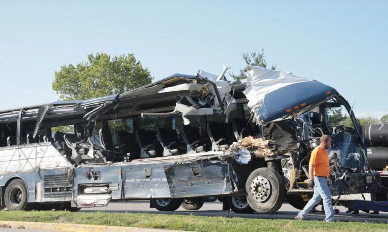 The bus was traveling westbound along Interstate 70 in Madison County around 1:55 a.m. when it crashed into the three semis, Illinois State Police said, citing an initial investigation.