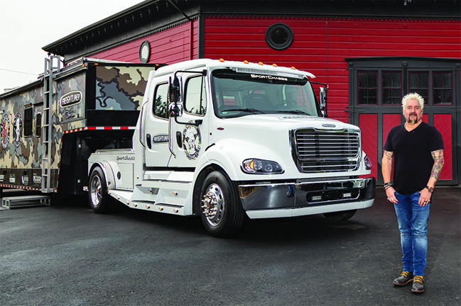 PORTLAND, Ore. — Guy Fieri is cooking up a new recipe but this time, it’s not one dish at a time in one of his famous restaurants. Instead, he’s serving first responders with a new mobile kitchen hauled by a custom Freightliner crew-cab tractor.
