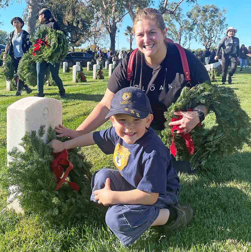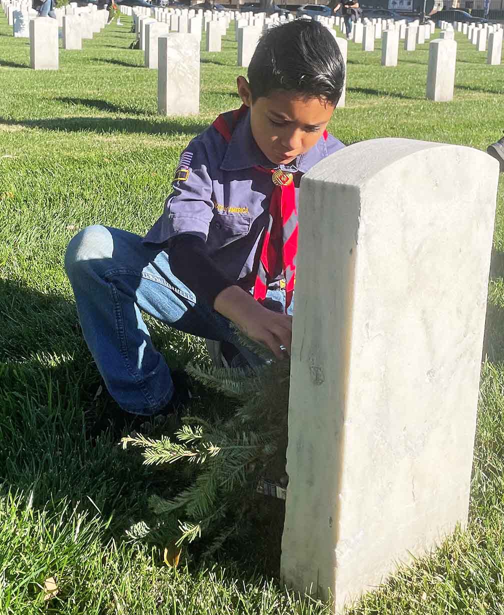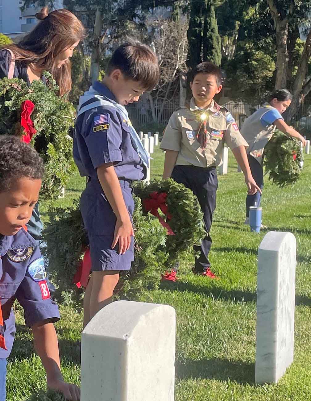 Cub Scout Pack 862 from Gardena, Calif., shows support to veterans by participating in Wreaths Across America on Saturday, Dec. 16, 2023, at Los Angeles National Cemetery. (Bobby Ralston/The Trucker Staff)