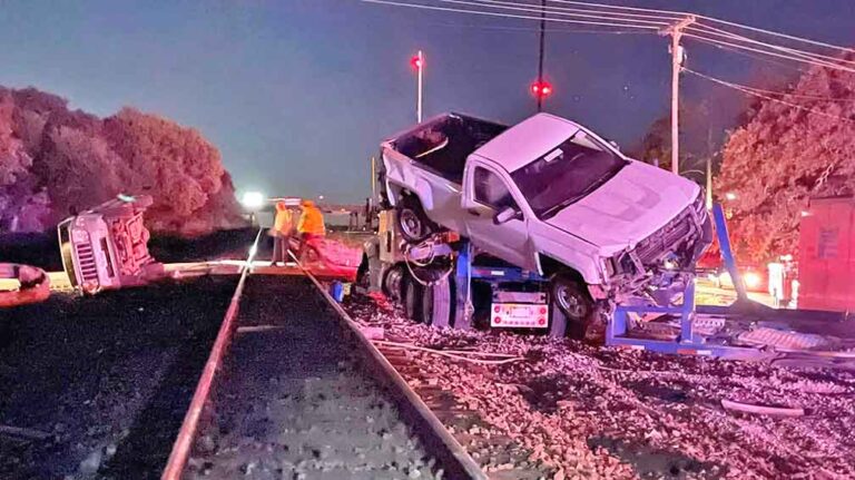 According to a Facebook post by the Love County Fire Department, the semi became high-centered on the tracks just before the northbound train struck the trailer, sending cars flying into the air and strewing them along the tracks.