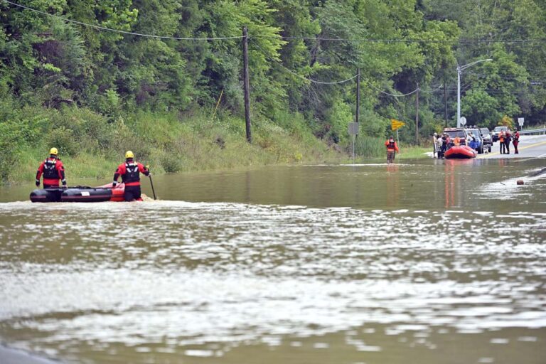 Rescue crews also worked in Virginia and West Virginia to reach people in places where roads weren’t passable. Gov. Jim Justice declared a state of emergency for six counties in West Virginia where the flooding downed trees, power outages and blocked roads. Gov. Glenn Youngkin also made an emergency declaration, enabling Virginia to mobilize resources across flooded areas of southwest Virginia.
