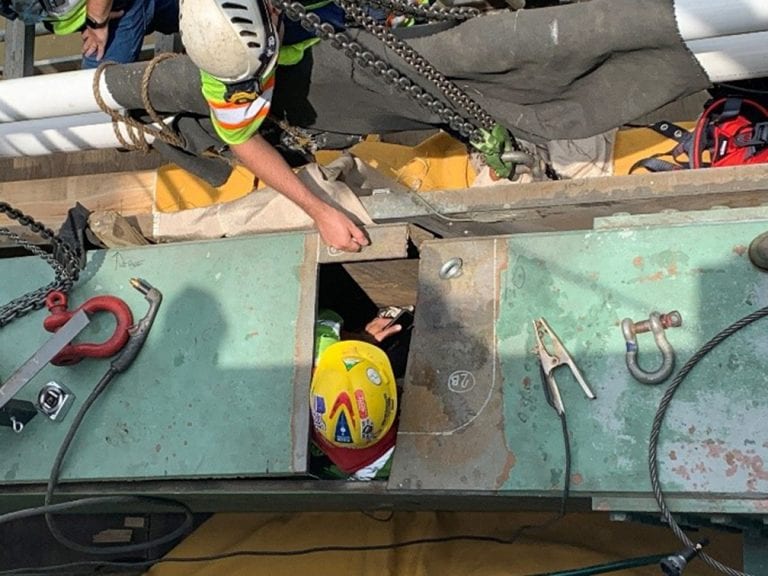 - More than 1.2 million pounds of tension has been removed from the fractured section of the bridge and transferred to a composite section.