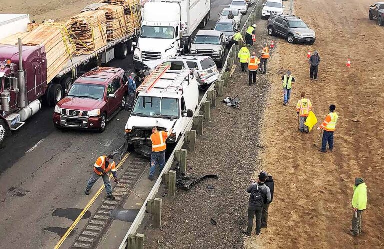 Oregon State Troopers responded to the multi-vehicle crash in the southbound lanes of I-5 between milepost 228 and 211.