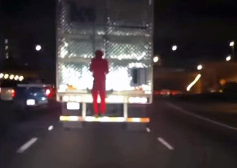 “We realize this may come as a surprise to some, but riding on the outside of a semi-truck that is going 65 to 75 mph, or any moving vehicle on I-285, I-75 or any other road, at any speed, is a death wish of sorts.”