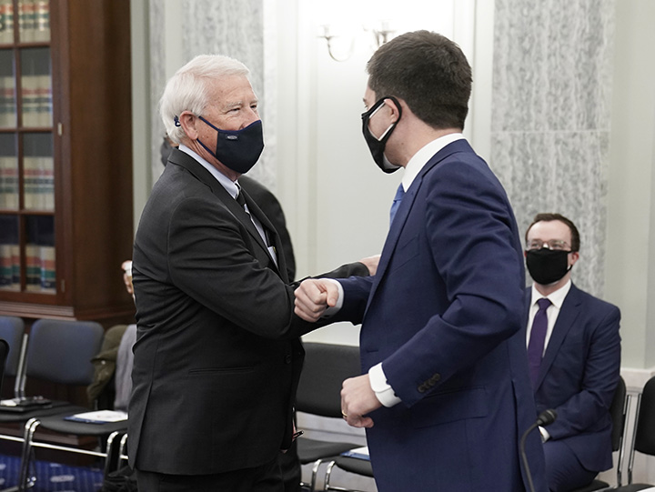 Republican Sen. Roger Wicker, who chaired the Jan. 21 hearing for a last time as the Senate finalized its transfer of power to Democrats, signaled likely challenges in finding ways to pay for a costly infrastructure overhaul but said he looked forward to working with Buttigieg.