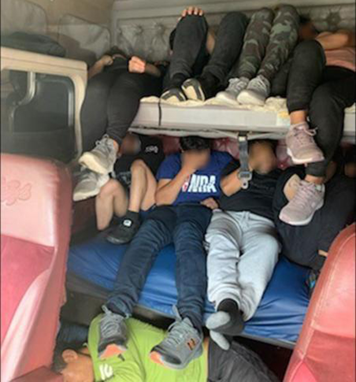 Agents searched the area and apprehended 33 people in the cab and trailer of the vehicle. The individuals were in the U.S. illegally from the countries of Mexico, Guatemala, Honduras, El Salvador, Ecuador, and Nicaragua. Most of the individuals were not wearing any personal protective equipment (PPE). All were provided PPE, medically screened and taken into custody.