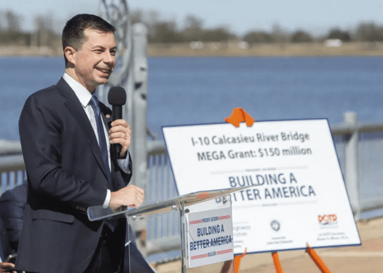 “If you’re paying attention to American infrastructure then you know how important this bridge is to, certainly, jobs, the waterfront attractions and the quality of life here in southwest Louisiana — but also to a supply chain that impacts the entire country,” Buttigieg said with the bridge in the background.