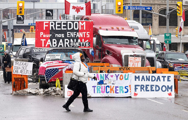 OTTAWA, Ontario — It’s been almost two weeks since a convoy of big rigs occupied downtown Ottawa, the capital city of Canada, to protest the country’s COVID-19 rule requiring unvaccinated truckers to quarantine for up to two weeks after crossing back into the country.