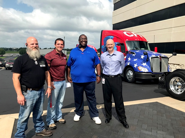 Left to right, CFI drivers and military veterans are Michael Slack and Josh Armstrong, who have been selected to pilot the new True to the Troops trucks; Darrel Bogan, who has driven the original True to the Troops truck for CFI since 2015; and CFI President Greg Orr. (Courtesy: CFI)