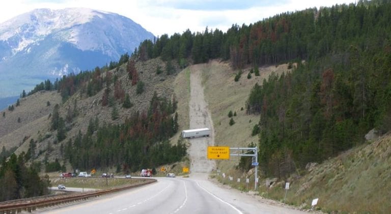 I-70 is known as having one of the country’s most difficult passes for truck drivers. An out-of-control runaway truck in April slammed into stopped traffic near Lakewood, killing four people. Other tragedies have been averted thanks to truck drivers using the corridor’s five runaway truck ramps along the route. The Lower Straight Creek runaway truck ramp along westbound I-70 at milepost 211.83 is the most used truck ramp in the United States, being used once a week on average during the summer months.