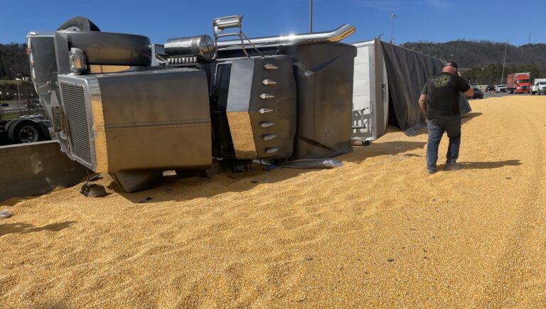 WHITFIELD COUNTY, Ga. — An overturned semi-truck carrying corn had lanes closed on Interstate 75 on Monday.