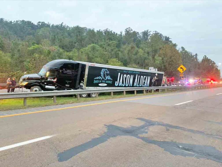 HUNTINGTON, W.V.— An 18-wheeler that’s part of country music star Jason Aldean’s equipment fleet crashed Thursday morning on Interstate 64 in West Virginia.