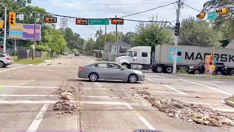 There’s no word yet on what company owned the truck that spilled the innards or how the spill occurred.