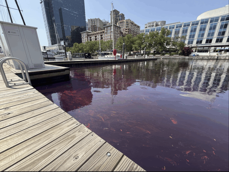 A boom was deployed on the water quickly and later crews began to skim the heating oil product off the water, Fire Chief James Wallace said. They’ve begun to flush the storm drain system to push the product to the harbor where they have skimmers to capture it, he said. That effort will continue through the majority of the day on Thursday. Officials explained that the water appears red due to dye in the fuel.