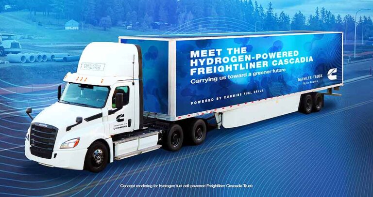 COLUMBUS, Ind., and PORTLAND, Ore. — Cummins Inc. and Daimler Truck North America (DTNA) are collaborating to upfit Freightliner Cascadia trucks with Cummins’ fourth-generation hydrogen fuel-cell powertrain, which provides improved power density, efficiency and durability, according to the two companies.