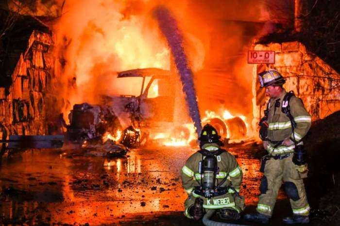 GLENVILLE, N.Y. — A tractor-trailer loaded with what authorities believe were gas containers slammed into the bottom of an overhead railroad bridge in upstate New York and exploded on the night of Thursday, Jan. 11 as a freight train was traveling on the tracks above.